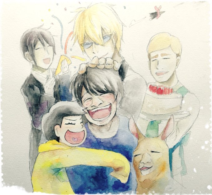 透明水彩で四男と五男