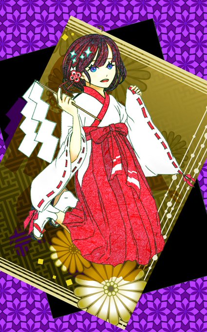 巫女様のリボンの白い筋を追加したんだった!! 二枚目のは、なんとなく色がメアアニ…