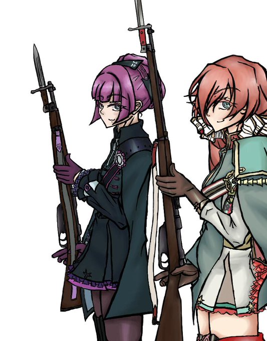 狙撃ポイントの廃ビルを鉄血に包囲されてしまった2人。 「ここを出るまでに何人刺せるか競争ですよ♪」 「おや、手加減は必要かなお嬢さん?」 格闘戦に明るいタイプの春田さんとエンフィールドさんが描きたかった・・・。