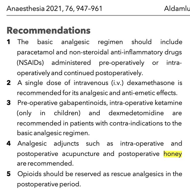 扁桃腺摘出手術後の鎮痛に「ハチミツ」を投与している施設はありますか??