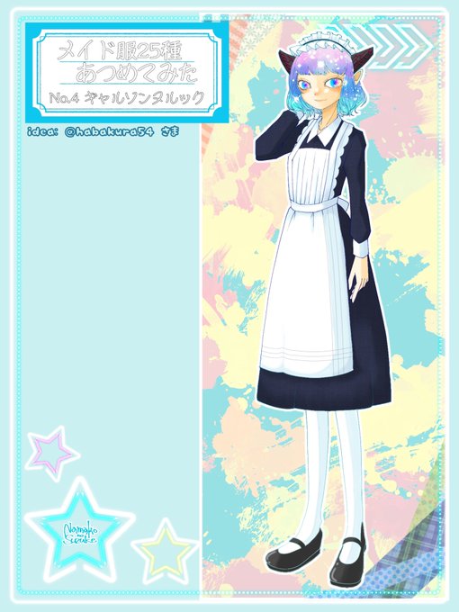 偉大なる神のデザインをお借りして、ツノありメイドさんを25人描くと言うチャレンジ中です。