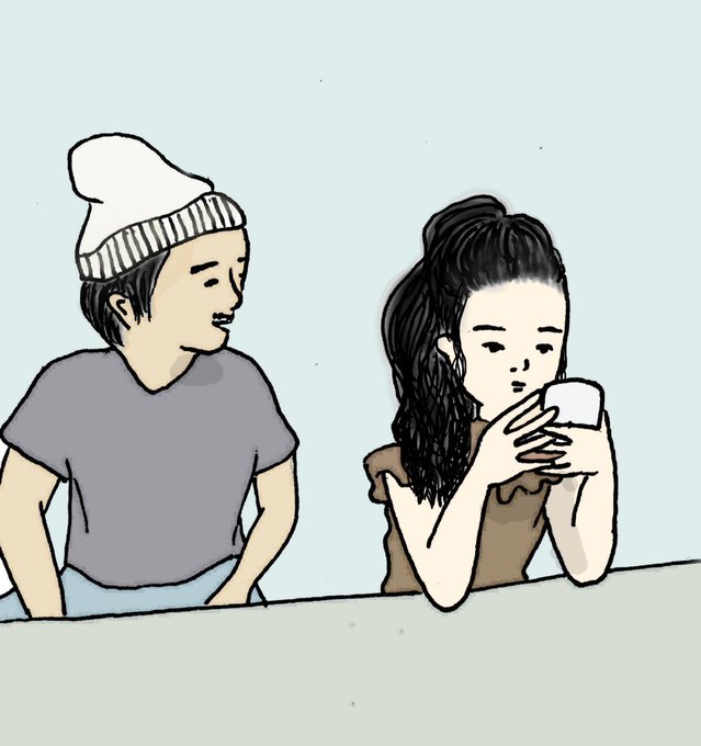 #絵をモノクロにするとかっこいい #絵 #イラスト #子育て 夫が中1娘に話しかけても無視されているシーン。 哀しさが増すな。
