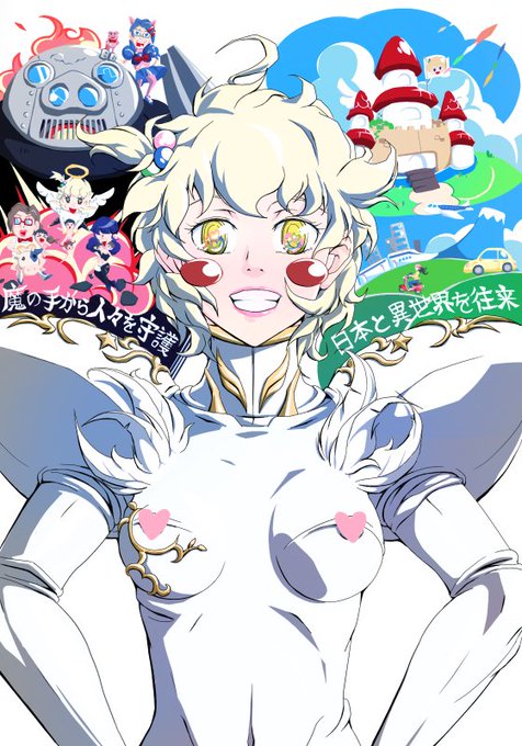 "ニカッっと微笑む沙樹の線画"をカラー化しつつ、背景に世界観の説明的なものを描き足してみました。 黒線くっきりの絵(立ち絵)と黒線なしの絵(背景絵)を混ぜてみましたが、バランスがイイ感じの一枚絵になってくれたと思っています。 #オリキャラ #同人
