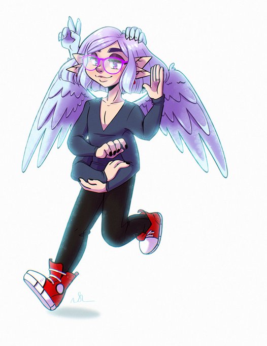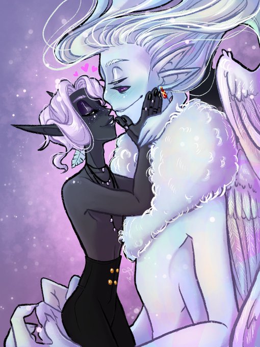 sometimes you just gotta draw mirrored stuff you know? it's low stress and fun. Anyway, here's Riley (yandere magical girl), Riyya (starry eyed elf litch son), and Harvey (good tiefling boy)!