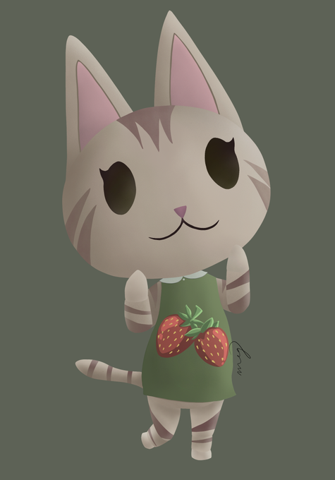 Made an OC villager based on @OhMyCarrie kitty Millie, who loves to play with strawberries :3