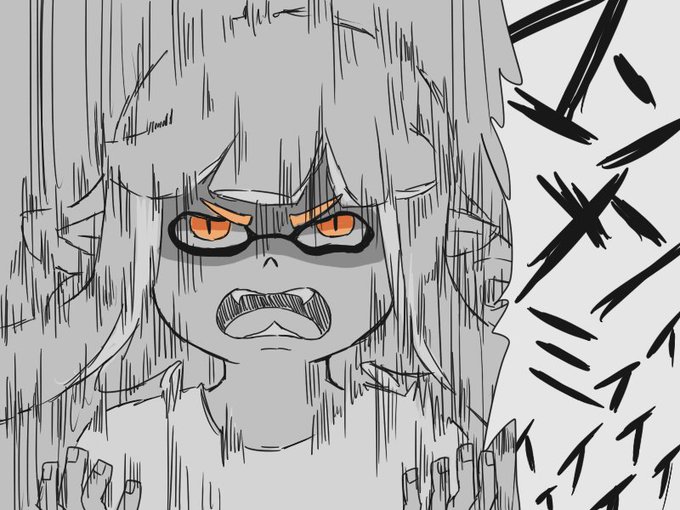 発狂っぽいのを描いてみました。イカです。