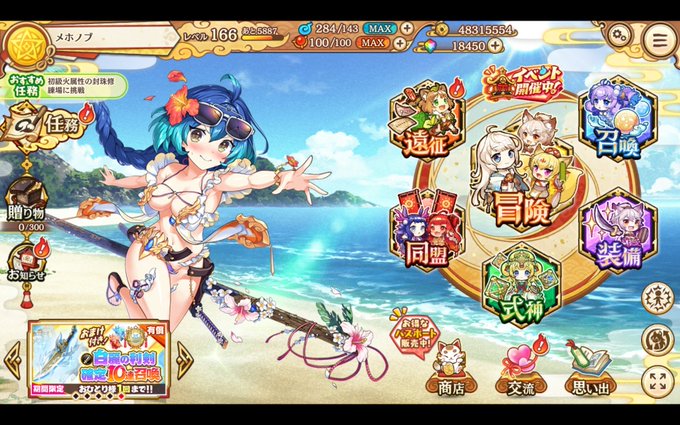 有償70連でミタマちゃん×2大黒様×1 僕のB地区への熱い想いがビーチのあやかし呼び込んだんだなぁって(激ウマギャグ) #あやらぶ
