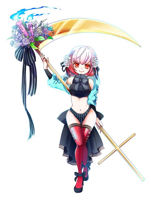 これは5年くらい前に何かでキャラデザしたものの何にも使われなかったヤツ、鎌のデザイン気に入ってる 振り下ろしたら炎がユラユラしてかわいいと思うから何かにいつか使おう