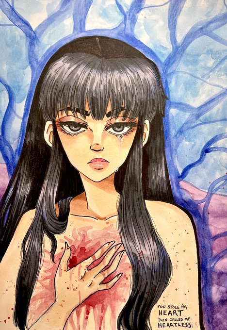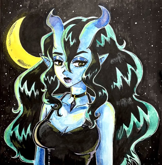 I made an ink drawing of the wonderful @mochidreamz ‘s dnd kiddo Termina, but then got bored and threw some water color in it. Because why not?