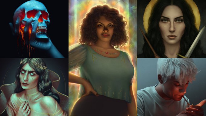 👋🏻 I'm V, a self-taught digital artist who enjoys playing with fantasy, lighting, realism & glitter/glowing details in artworks! 👩🏻🎨✨ here are some of my artworks: