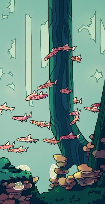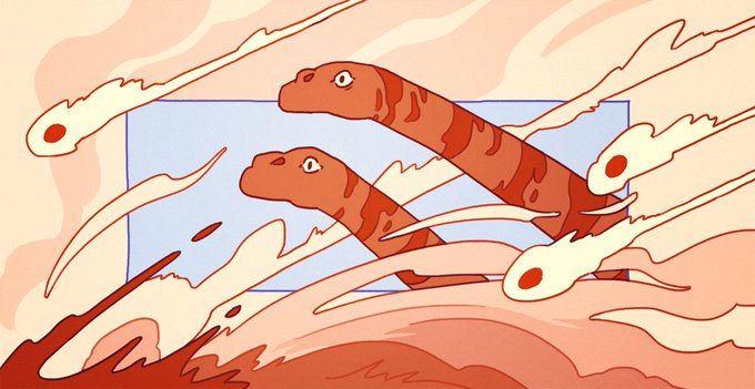 some of the illustrations i've done for @YearOnEarth, who is tweeting the history of the earth compressed into one calendar year. now's a pretty good time to tune in, there's less than a week of 2020 left and dinosaurs just left the stage!