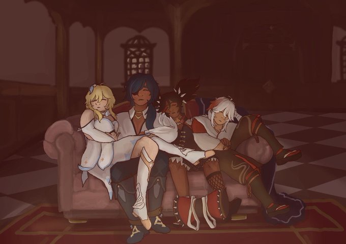 they do be sleeping, napping even #lumine #kaeya #xinyan #kazuha #GenshinImpact #原神