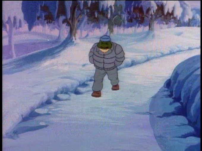 Don is taking so long to figure out HOW TO GO EAST that Mike and Raph are having a snowball fight.
