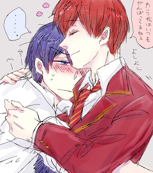 お題「書生セラ」 書生セラ(カラおそ)初描きだったけど楽しかったです😊 リクエストありがとうございました💙❤️