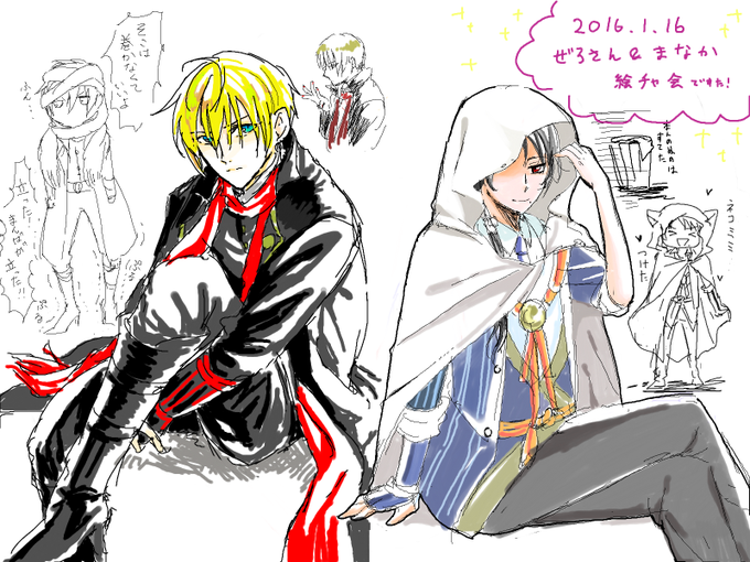 わーいまなかさんと初絵チャです!こんなに楽しいとは…!!(*´▽`*)加州くんとまんばくんの衣装交換描いて下さいました…!加州くんの大人びた表情が素敵;;;ねこみみかわいい;;;
