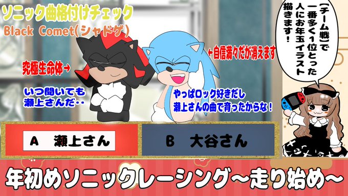 本日22時よりソニレ走りはじめやります! チーム戦で一番多く1位なった人にお年玉イラスト描きます!いつもどおりゆるーくやるのでチーム組とかも適当なのでまあそこは許して!いつもどおり事前募集とかしないので・・ サムネのわかるやつだけついてこい感半端ない・・・