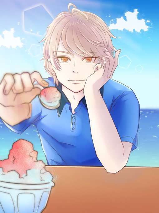 真夏の貴臣にかき氷食べさせてもらう図