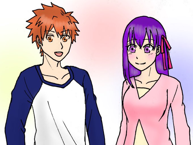 #リプきたキャラの顔だけ描く シロウくんと桜ちゃん! 初めて描いたから色々目を瞑ってほしい…………