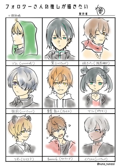 👀フォロワーさんの推しを描きたい 初描きもたくさんで楽しかった〜。リプありがとうございました!