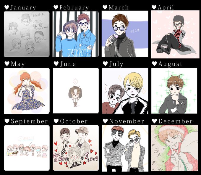 2016年1年間のイラストカレンダー!テンプレお借りしました!最初はアイビスの使い方がわからなくて試行錯誤して……今は落ち着いて描けるかな??けど来年もアイビス使いながらアナログも描いていきたいと思いまする!!(^O^)