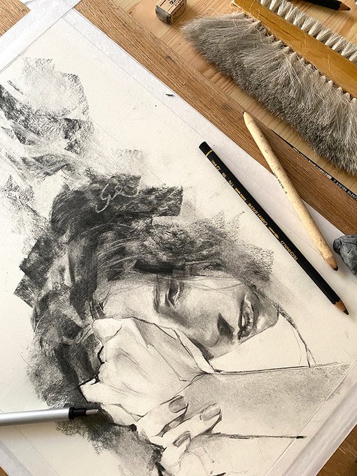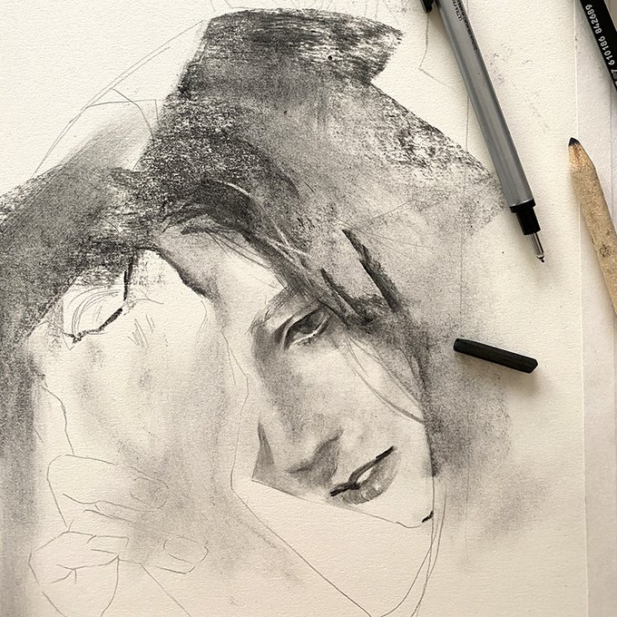 4:00 am #木炭 #鉛筆 #透明水彩 学生時代の木炭見つけた