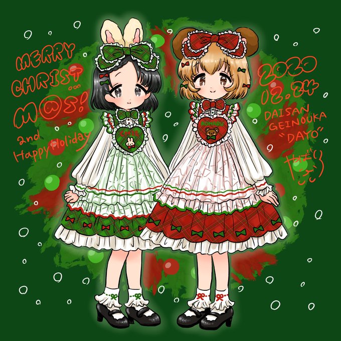 U149及びだよが今週は休載なので、小春ちゃん千枝ちゃんをかきました。日付がかなり先走っている...一足先にメリークリスマス🎄❤️💚 #第3芸能課だよ