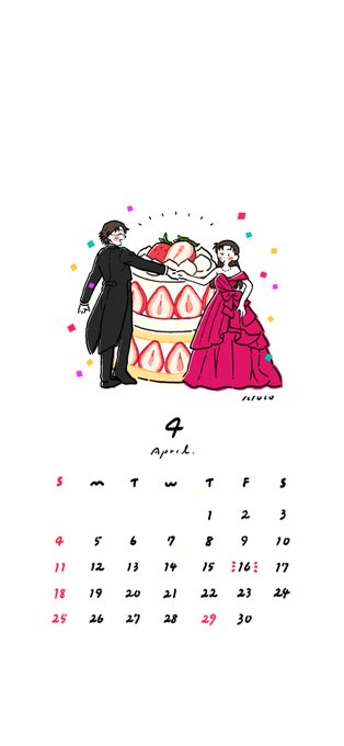 🌹【4月カレンダー壁紙】🍰