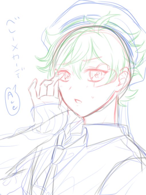 カーディガンとベレー帽 #ツイステファンアート #エース・トラッポラ