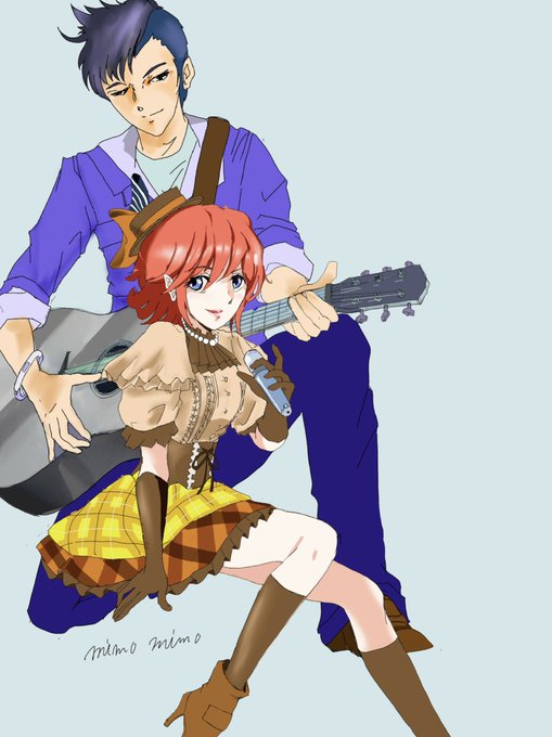 カナメさん、俺のアコギで歌ってくれ❗️ 今日は2人のステキな記念日と言うコトで、デュエットして欲しい願望爆発しました★彡 #メサカナ真ん中バースデー #マクロスΔ