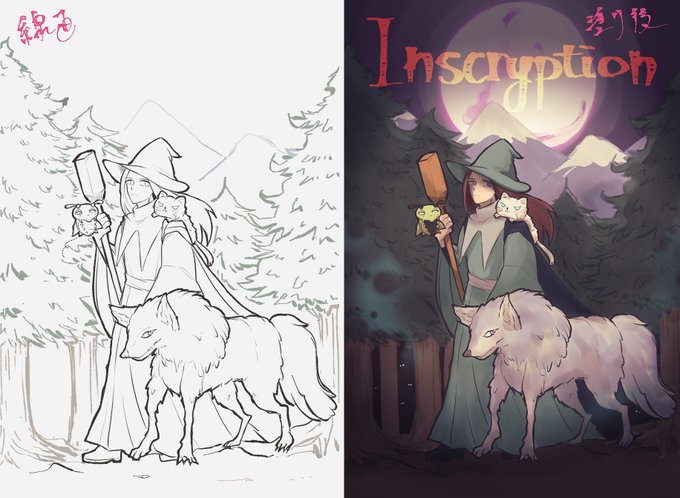 #皆さん線画と塗った後を見せてください 折角なので。 線画終わって塗りの段階でパーツ足したり微調整することが非常に多いので線画が存在しないパーツが結構あります!あとで自分がひっそりと困ります。