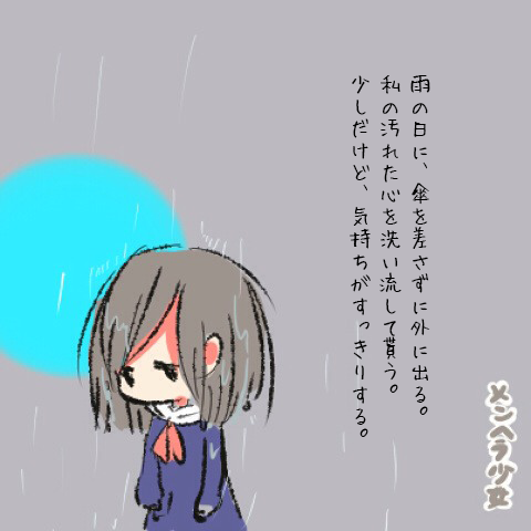 雨の日に、傘を差さずに外に出る。私の汚れた心を洗い流して貰う。少しだけど、気持ちがすっきりする。