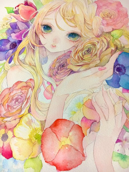 ラナンキュラス描くの苦手なのになんでこんな入れちゃったんだろう。。。(後悔)