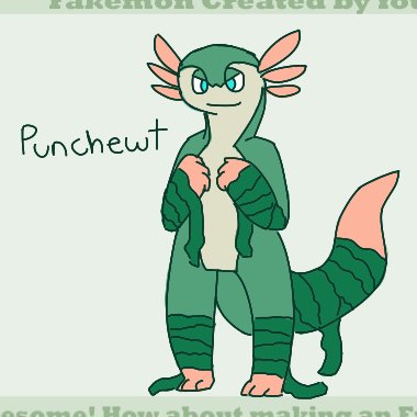 JFHDS WTF OK this is from a fakemon meme thing and the design is eh (2013 after all) but the NAME. i dont remember if i intended it to sound like punch-out. i don't think i realized it at the time. i was a fucking genius game freak hire me