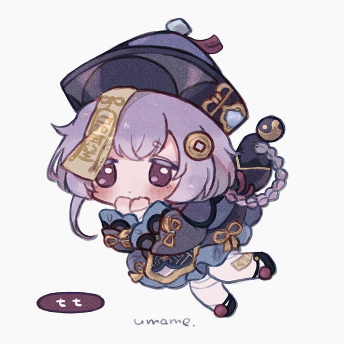 パンのおまけシールみたいなクレーちゃんと七七ちゃん #原神