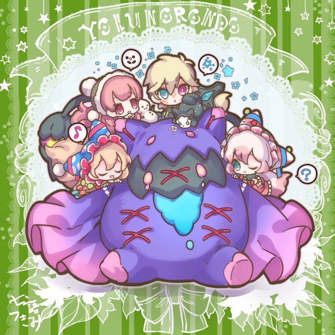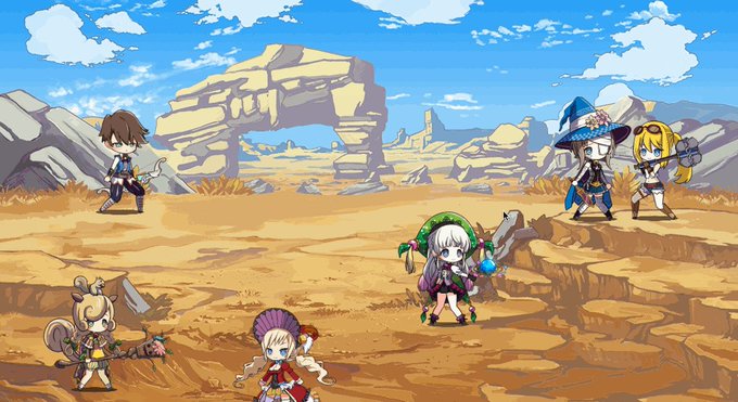 まずはは、お約束の集合立ち絵と、お菓子Ⅱを彩ったモンスターさん達の登場なのだよね(≧v≦●)♪ #メルスト