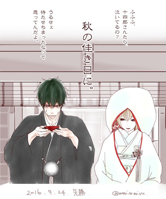 ジューンブライド最終日なので過去絵連投ご無礼します。② 銀魂お嫁さん絵。秋のもあります。 #沖神 #銀月 #かむそよ