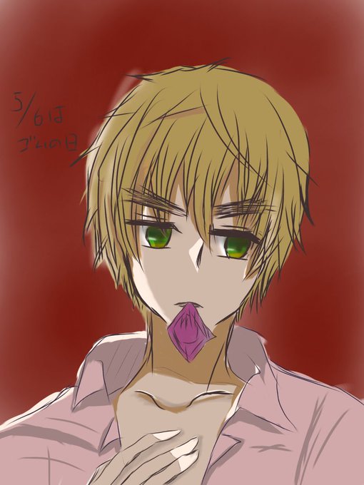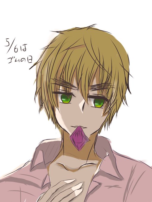 今日は5月6日だぞ ゴムのひじゃあああ てことでアーサーに咥えゴムやってもらった #ヘタリアお絵描き好きな方と繋がりたい #ヘタリア #ヘタクラさんと繋がりたい