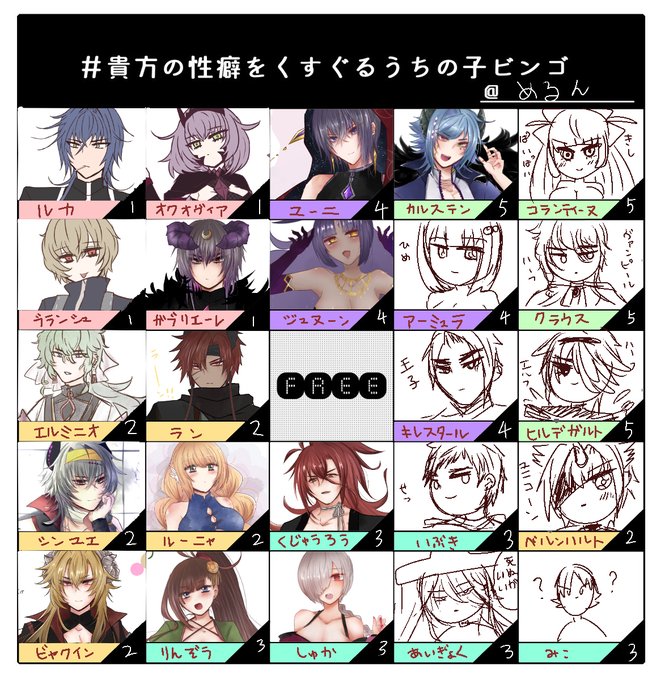 RPG創作のキャラこんだけいるよ (右側の顔くちゃくちゃでビンゴ出来ないね😢)
