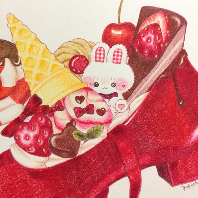 @Lupopo_cafe さま、いつもありがとうございます! 色鉛筆で、甘くておいしいイラストを描いています🐻🐰🍓🍪