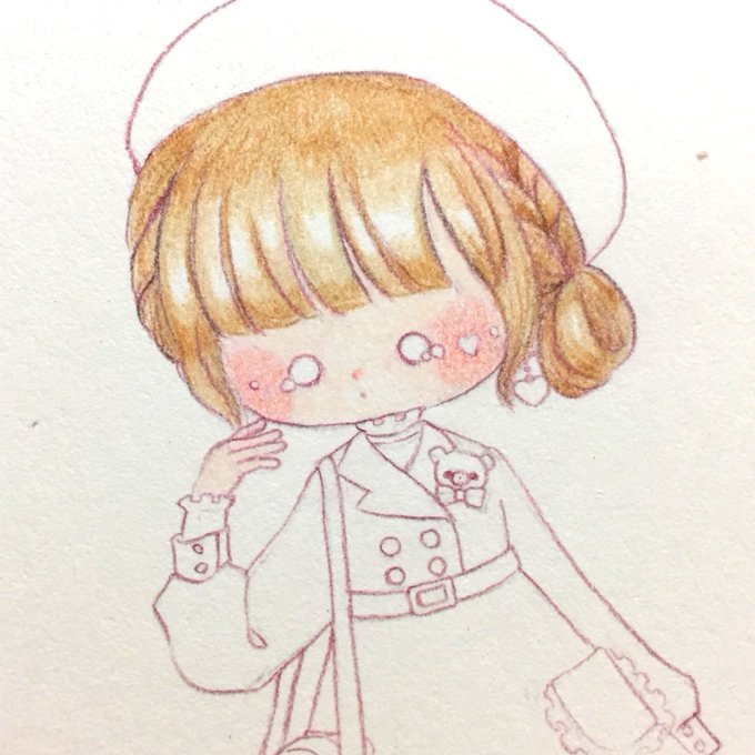 お洋服のイラストを描きたいので、めちゃ久しぶりに女の子のイラストもがんばる👒可愛く描けるかな〜🙄 #ガチ制作会 #色鉛筆