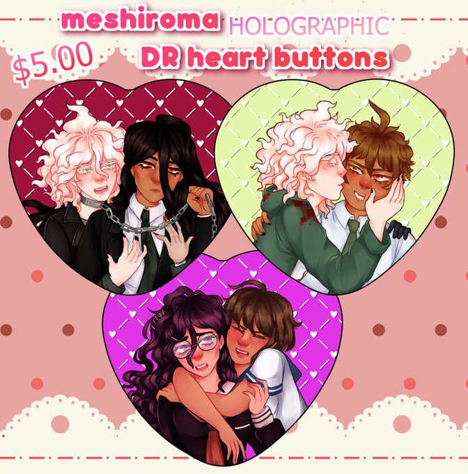 pre-orders are open for my holographic heart buttons!! $5 USD each