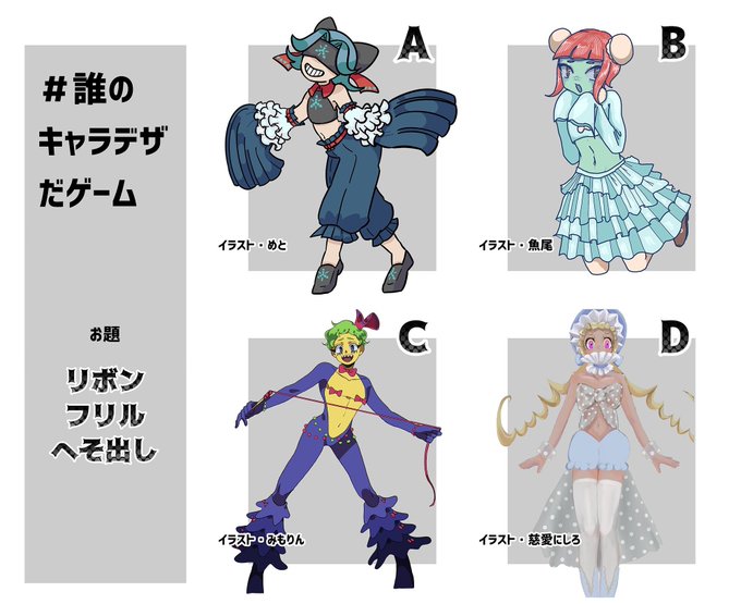 #誰のキャラデザだゲーム 時間になたでした!! 投票して下すった方ありがとうございました!!!🥳🙏 めとがデザインしたキャラクターはD‼️‼️でした!!!💋💋 当たった人オメデト!!👗