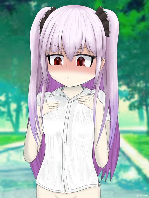 Rushia but it’s ☔ [SFW VER] I think she got more to worry about than just a wet shirt tho 😳 #絵クロマンサー