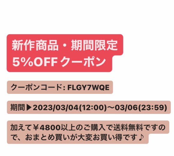 画像の新作3作品対象のクーポンも本日までです🌟 是非この機会にご利用くださいませ✨
