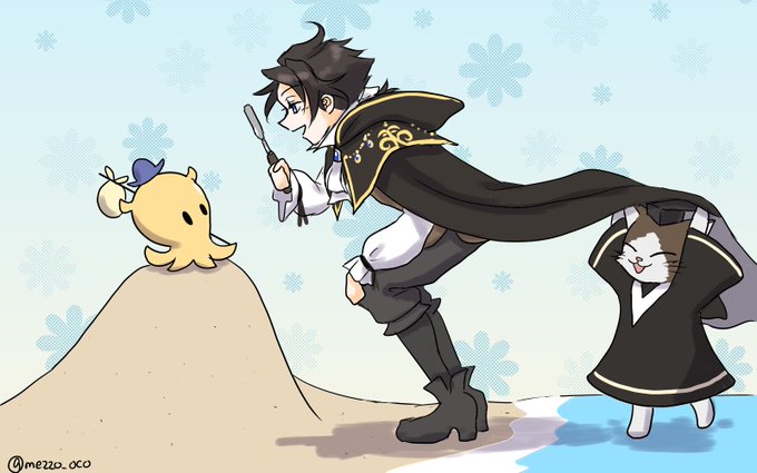 #オクトラ1d1w お題「海」で参加させて頂きました! サイラス先生と助手のアイラくんと旅たこくん
