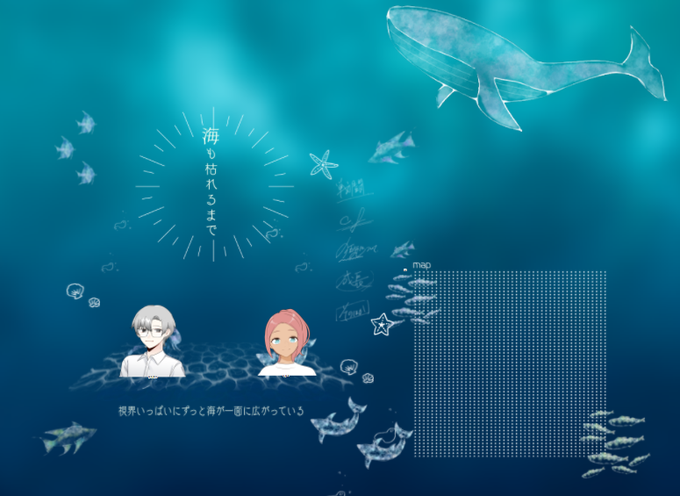 CoC「海も枯れるまで」 K P:ましもさん HO1:藤名真冬(日鶴さん) HO2:湊 朝海(ミフコ) ベストエンドにたどり着けました。穏やかで暖かい海をありがとうございました。