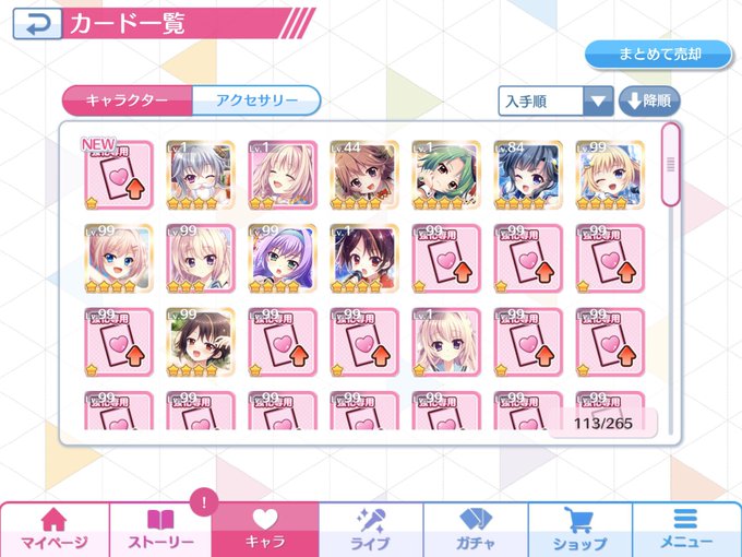 シンフォギアXDのメモリアや装者カードを限界突破させたり整理してた ってことでお気に入り2枚