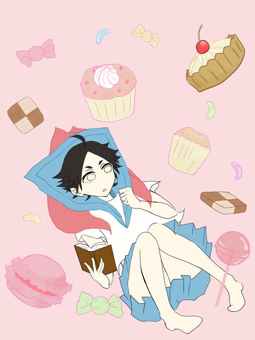 これが今日オールして描いた可愛い可愛い作並君♡ ピンクっぽく仕上げてみました、ほんと可愛い// 小物描いたの多分初めて、、! 甘いもの食べたくなるなぁ♡