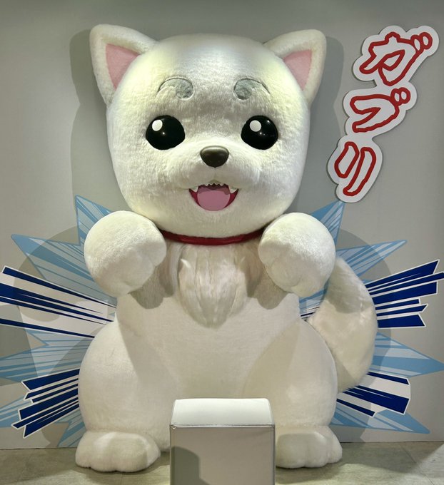 銀魂展行ってきたーーー!!!!😊✨噂の汚い生原稿を生で見れて良かった🥺生々しくてとても良かった……!!! 定春、スタッフさんに逐一ブラッシングブラシで毛並み整えてもらっててどう考えても万事屋より大事にされてて幸せになった🥹💕
