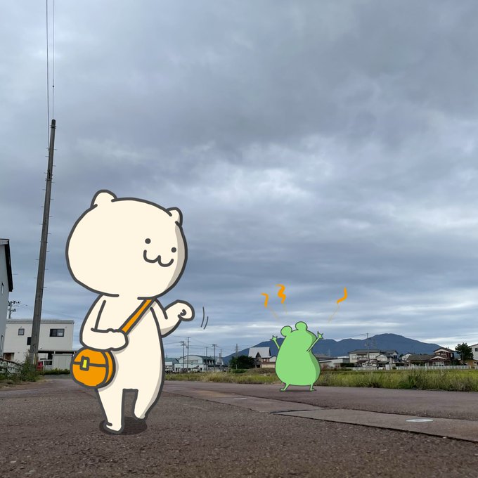 気づけば空一面灰色の雲に覆われてきたので急いで歩いていたら、カエルくんがまた謎のエネルギーを察知し始めにゃした。。